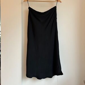 Blend of viscose and tencel fabrics. Flowy and stain fabric, drapes perfectly.
