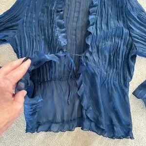 Elementz blouse/wrap. Sz L. Sheer. Pleated. Ruffled hem. Sexy piece.