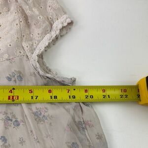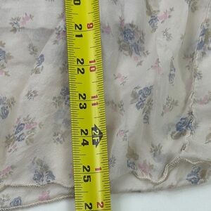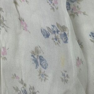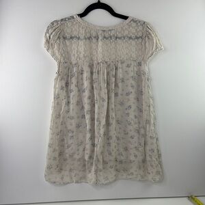 Charming floral blouse with delicate lace details. Features a soft cream colour with subtle floral patterns.