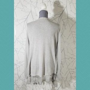Elena Baldi Ivory Knit Open Front Cardigan w/ Lace Trim