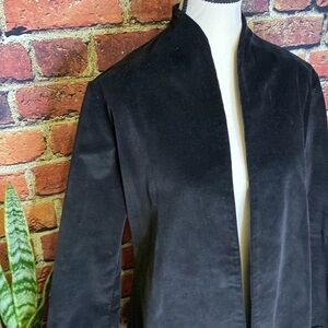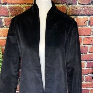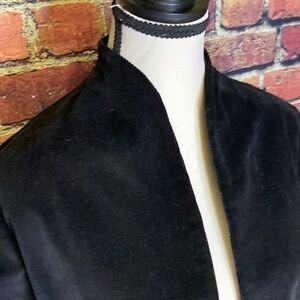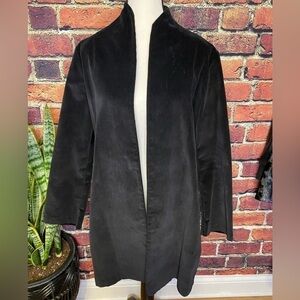 Elena Conte Black Corduroy Long Blazer Size M in great condition. No zippers, pockets or buttons. Jacket can be worn with or without the belt. Small mark at collar (see pic). It’s a very nice material and it’s stretchy. Very flattering fit when on.