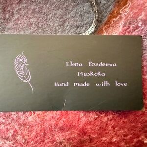 ✨ Elena’s felting work has been featured in Muskoka Arts & Crafts and local artisan shows. Each scarf is made start to finish by hand in her 100-year-old home studio using water, wool, soap, and heart.