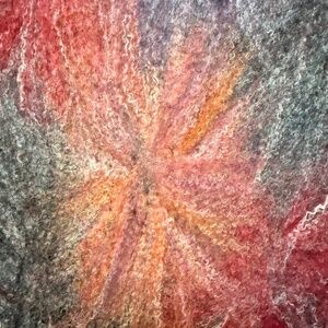 Wrap yourself in wearable art with this stunning hand-felted wool scarf, crafted by acclaimed textile artist Elena Pozdeeva in Bracebridge, Muskoka. This one-of-a-kind piece blends Old World tradition with Canadian natural beauty — a tactile reflection of her family’s three-generation felting heritage from the Ural Mountains of Russia to the forests of Ontario.