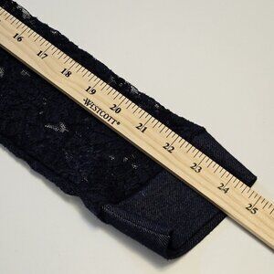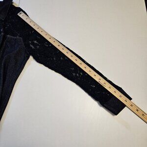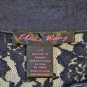 Elena Wang Top Womens L Indigo LS Lace Pullover Chambray Stretch Boho Whimsigoth