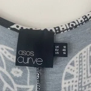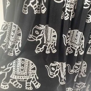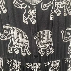 Very gently used black elephant print dress. The dress is a stretch jersey fabric and flows nicely away from the body. Features a faux button top and a-line shape. Little bit longer than a mini dress.