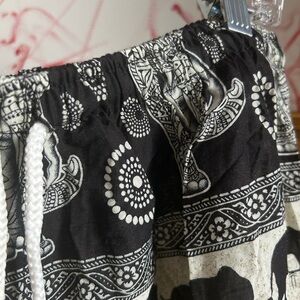 Elephant Print Black and White Boho Hippie Shorts Free Size