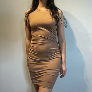 🌟 Elevate Your Style: Woman’s Form-Fitting Stretch Dress, Size Medium, Tan 🌟