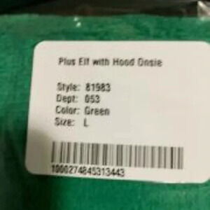 Elf Xmas Pajama PJ One Piece Romper Size L Costume Hooded Sleeper PJ New
