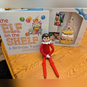 Elf on the Shelf A Birthday Tradition Book, Costume and girl Elf on a shelf. The elf was bought separately for $49 and is included. The set was used one Birthday.