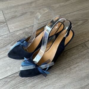 Elia Bruni Navy Suede Leather Slingback Pumps Made in Spain