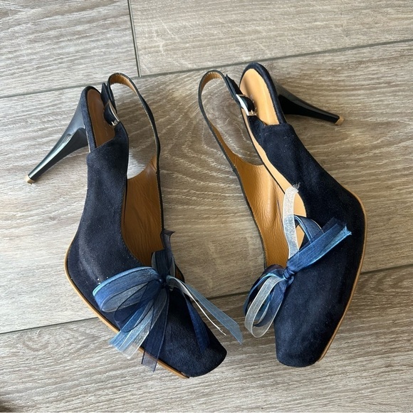 Elia Bruni Navy Suede Leather Slingback Pumps Made in Spain