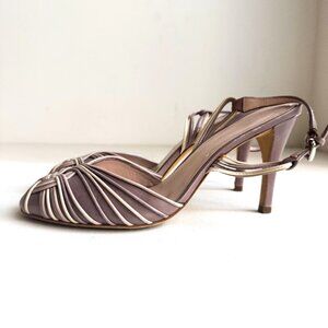 Elie Tahari Beige Two Tone Leather Braided Slingback Heels 38.