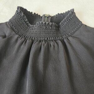 Elie Tahari Black 100% Silk Blouse with Sheer Floral Lace Sleeves Size XS