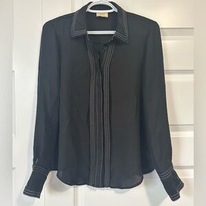 Elie Tahari Black Long Sleeved Blouse with White Stitching