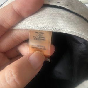 94% wool, 6% spandex. Flared at the bottom. Great for workwear or the office.