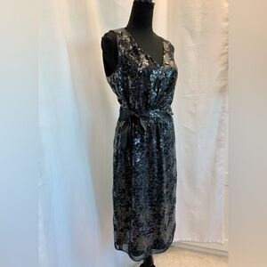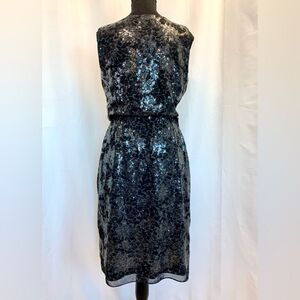 Elie Tahari Brown black sequin leopard print sleeveless cocktail dress Sz 10