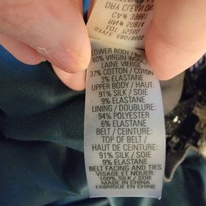 Silk top, wool/cotton pencil skirt look, with a separate, reversible belt and lined!