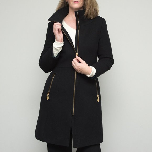 Elie Tahari Knee Length Wool Blend Coat With Gold