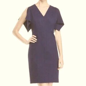 Elie Tahari Plum Slit-sleeve V-Neck Designer Sheath Dress