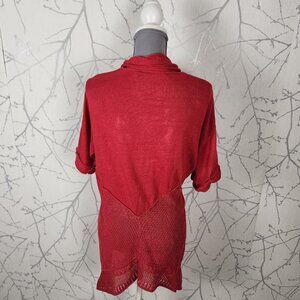 Elie Tahari Red 68% Linen Knit Open Hankie Hem Cardigan