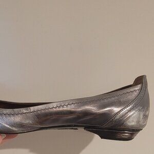 Metallic Elie Tahari Flats in Size 8. Two-toned grey and silver.