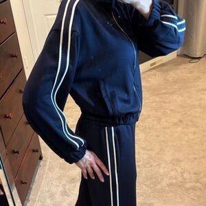 Elie Tahari Small Women's Black Track Suit with White Stripes