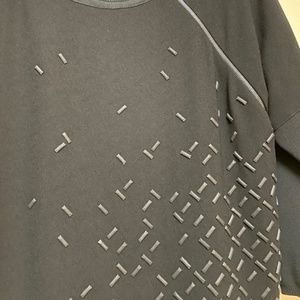 Elie Tahari. The Celeste knit, beaded, zipper, multi-fabric sweater M-L ptp= 22”