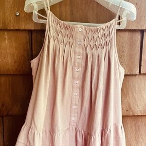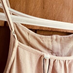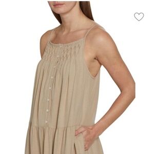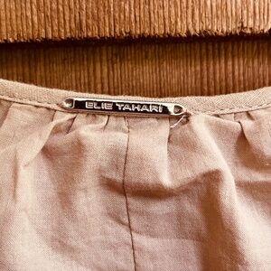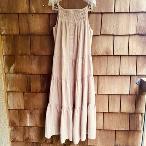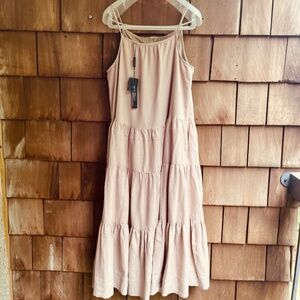 Elie Tahari Tiered Linen-Blend Midi Dress Baige Sundress Size M