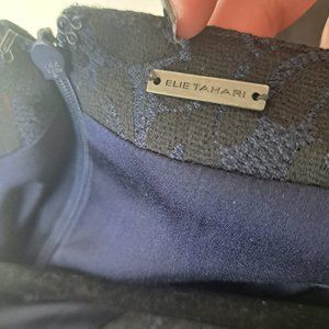 Black dress with royal blue and black damask on sides and back. Worn maybe twice, in good condition.