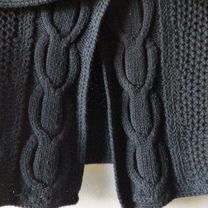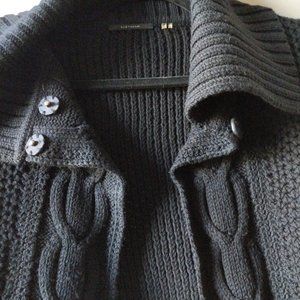 Buttons in the front and high neck. looks amazing on with a shirt, top or turtle neck. nice completion to an outfit with either pants or skirt.