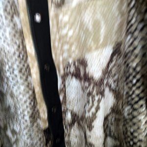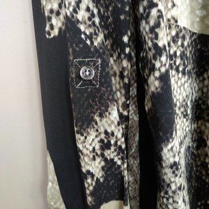 Brand new - never worn. Black with beige/olive snake print. First pic is most accurate color. Gorgeous blouse and excellent price for a silk blouse that is new.