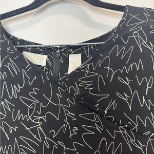 🔍 Keywords: Elisabeth by Liz Claiborne, Doodle Print, Black Dress, Short Sleeve, Round Neck, Shift Dress, Novelty Print, Plus Size, Y2K, Vintage
