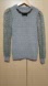 Classy grey cable knit sweater lace sleeves with keyhole neckline and black leather bow, gold tone accents by Elisabetta Franchi.