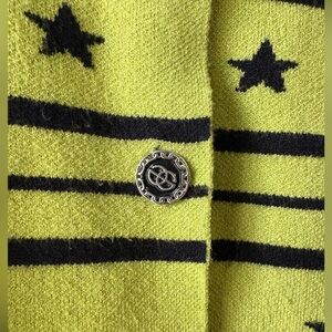 Elise boutique size M, lemon lime green short fitted long sleeve, stripes stars