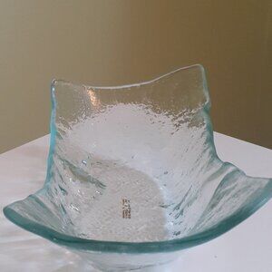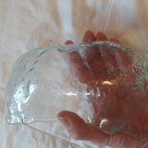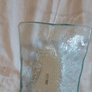 Preowned and great condition. Beautiful, unique art glass dish/tray. Handmade in Canada by E.J. Midgley Elite Art Glass Inc.. A must-have for anyone who loves and collects glass items. Very collectable. Green tint to the glass. Pebbled glass effect. Tray measures about 7.5 x 4.5 inches. Depth is about 1.5 to 2 inches.