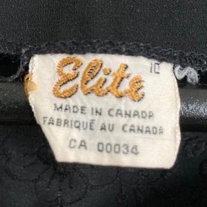 Vintage Elite sheer black blouse with eyelets and embroidery and buttons on the left shoulder. Tag says size 10, but fits closer to a medium.