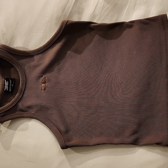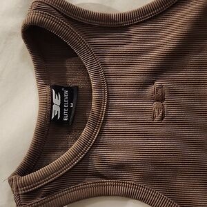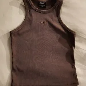 Stylish brown ribbed tank top. Features a subtle logo detail.