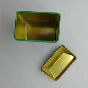 Cute little metal tin box depicting a produce store. A different image on each side. Collectible city scene.