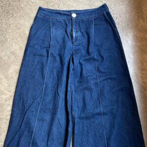 VGUC wide leg denim from Eliza Faulkner. Raw edge hem. Generous style. See measurements in photos. Cute pocket detailing. Size 12