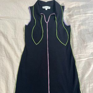 Body-con mini dress made with thick and stretchy ponte fabric that gives you a "hugged in" feeling when. you wear it.