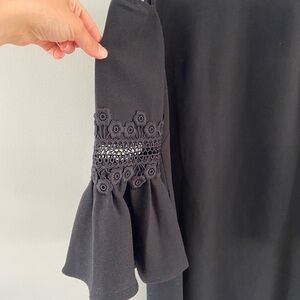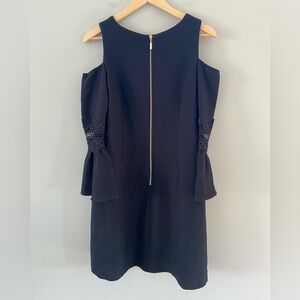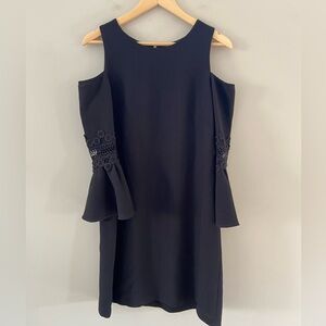 Eliza J Appliqué Black Cold Shoulder Lace Ruffle Sleeve Classy Midi Dress