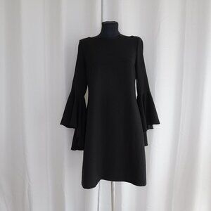 Eliza J Bell Sleeve Black Crepe Shift Dress Sz 6