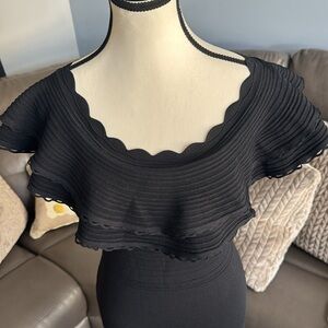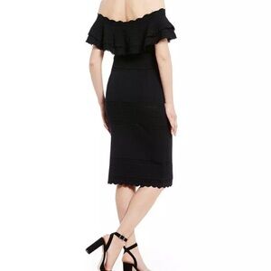 Eliza J Black Off the Shoulder Ruffle Scalloped Sheath Bodycon Dress Small LBD