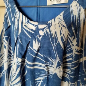 Eliza J Blue White Leaf Botanical Fit and Flare Dress 10
