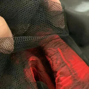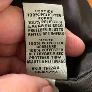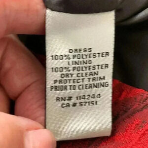 This is in like new condition. The fabric looks and feels like crepe. It’s fully lined and the bottom has a crinoline skirt.