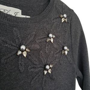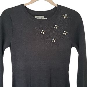 Eliza J Dark Gray Long Sleeve Fit & Flare Knit Dress With Embellishments