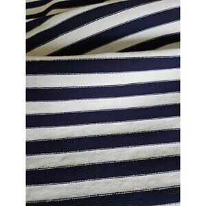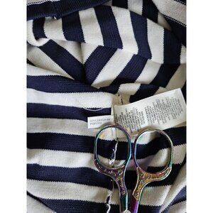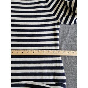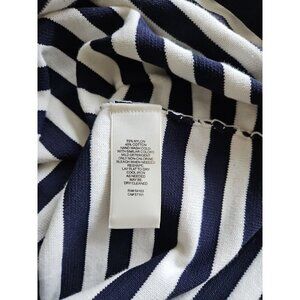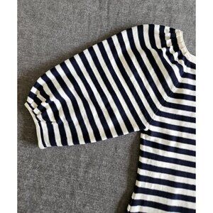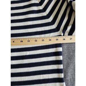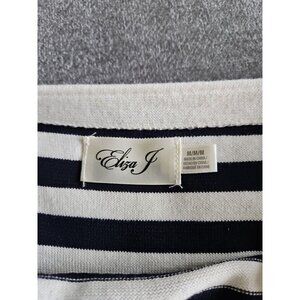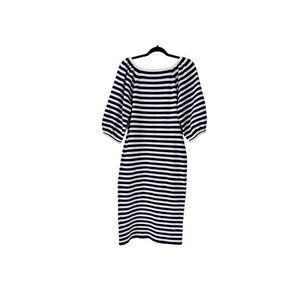Eliza J Dress M Navy White Striped SS Bodycon Reverse Knit Midi Stretch Nautical