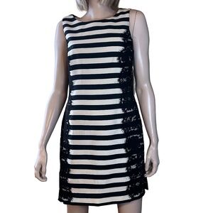 Eliza J Dress Rayon Blend Sheath Lace Lacy Stripes Scuba Sleeveless
