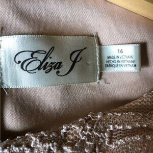 Timeless and elegant, this Eliza J lace dress in a soft champagne blush hue is a beautiful choice for weddings, parties, and special occasions. Featuring intricate lace detail and a tailored sheath silhouette, this fully lined dress is finished with 3/4 sleeves and a modest back zipper for a refined, feminine look that never goes out of style.