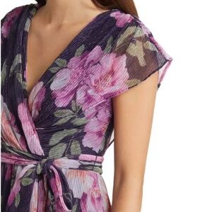 Eliza J Extended Draped Shoulder V-Neck Gown with Sash Floral Maxi Sz 12